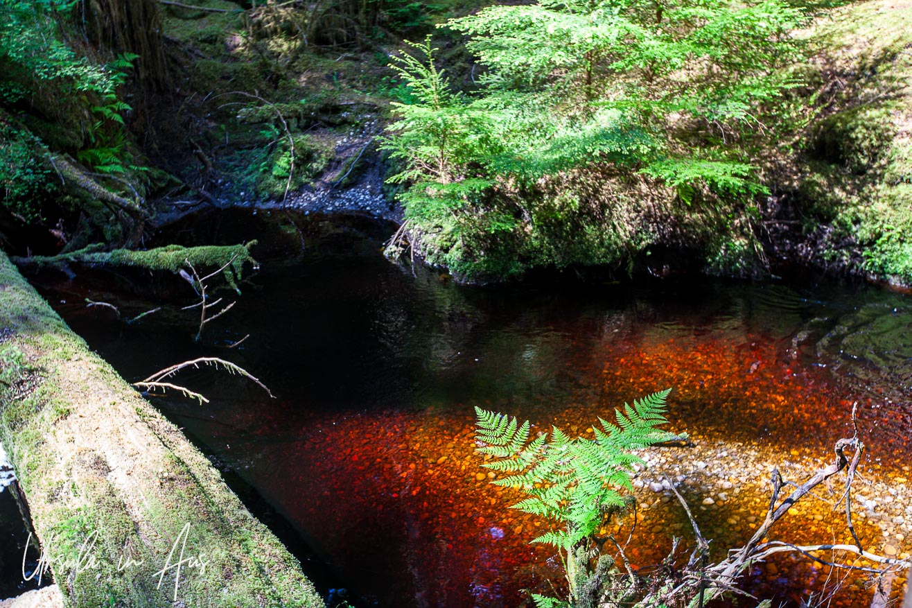 About half way back to the car, I recross the little Geikie Creek, where the rich organic matter in the ground turns the water blood red.