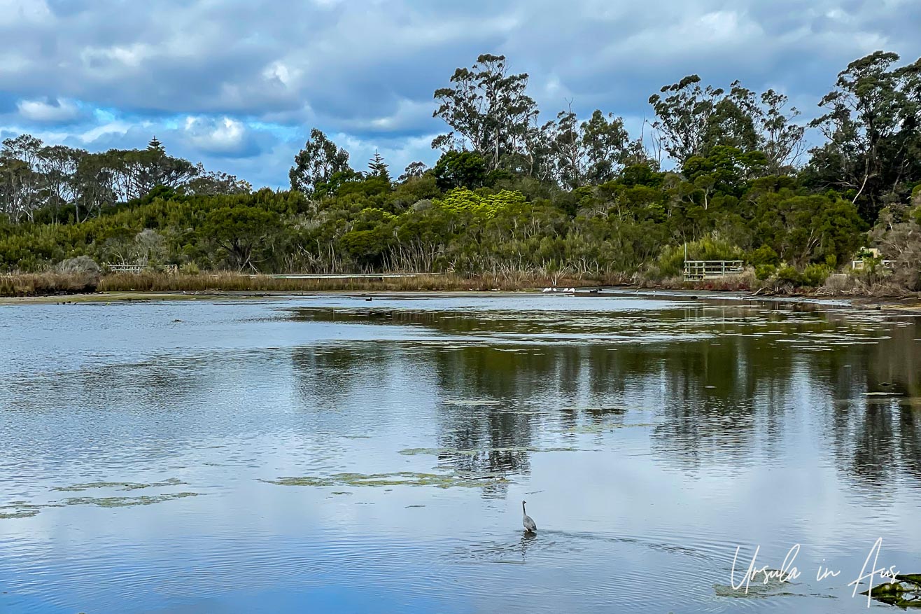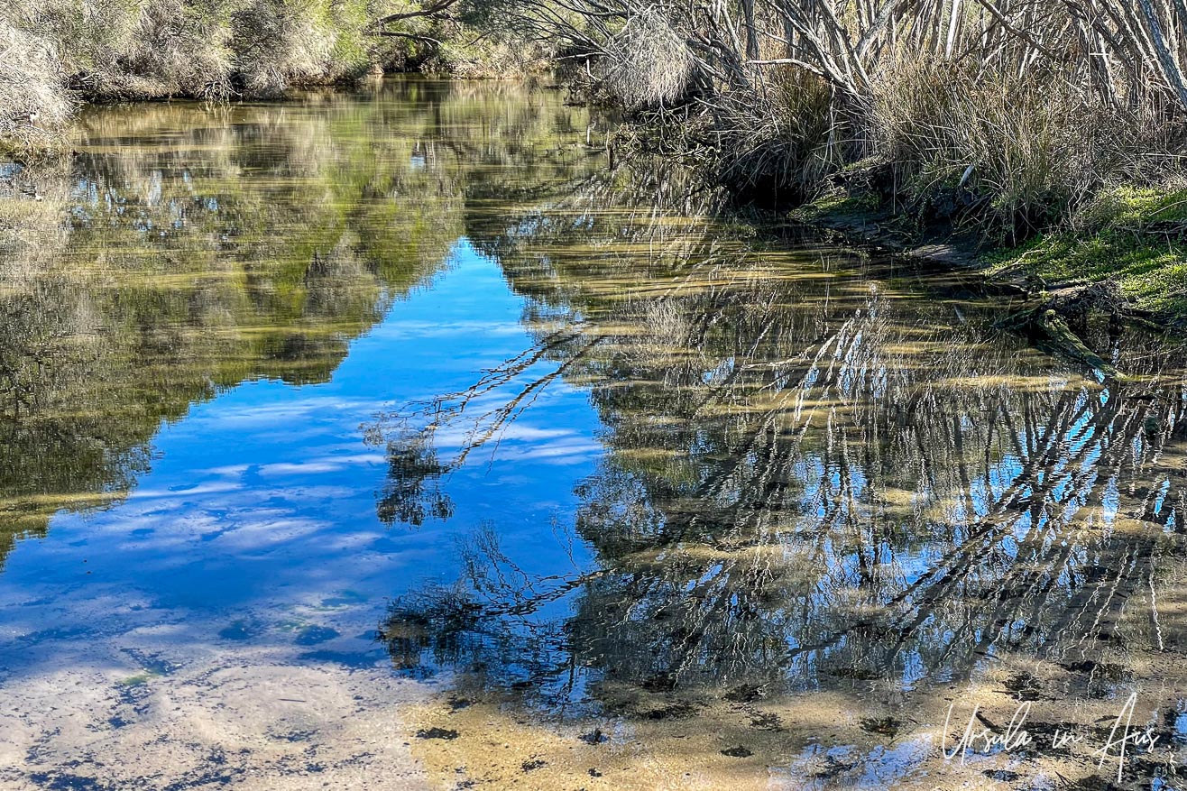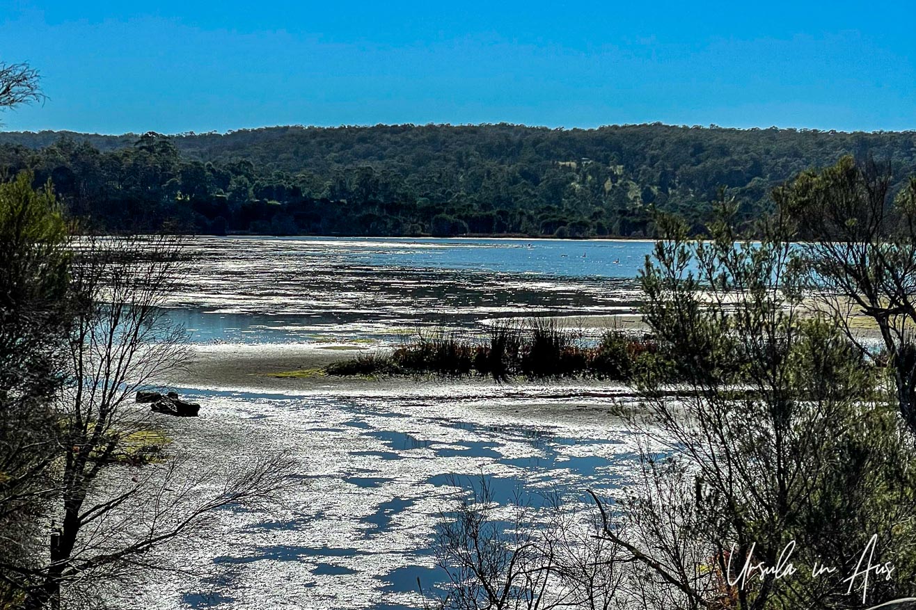 The waters in the tributaries into Lake Curalo are more sheltered than the lake itself – and reflect the surrounding tea trees (melaleuca) in their clear, glassy surfaces. (22August2021)
