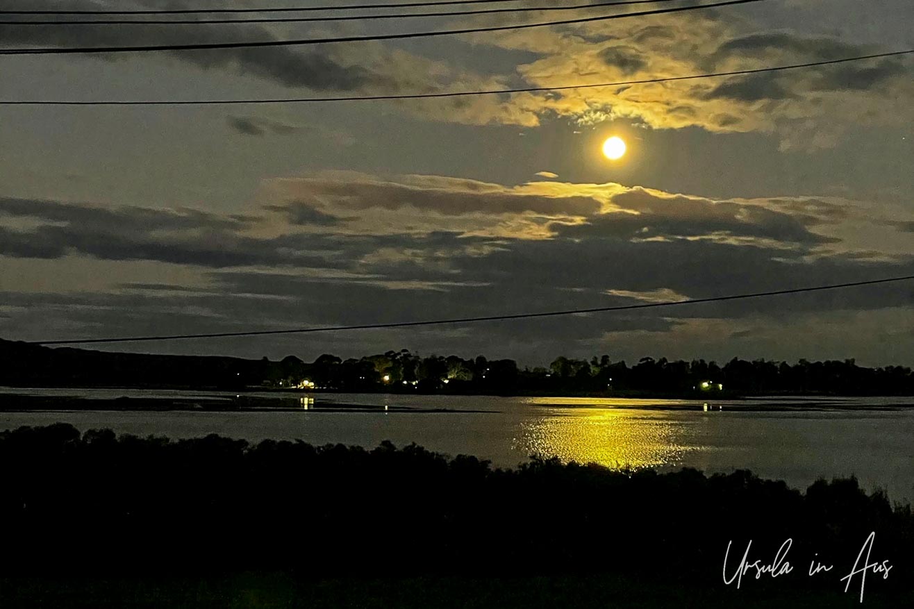 Aside from the powerlines in my way, I have a good view of the moonrise from my balcony. (26May2021)